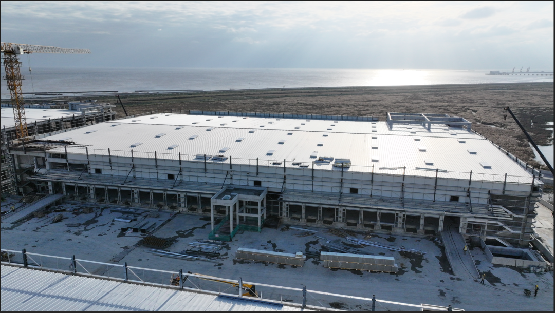 濟寧一建鋼結(jié)構(gòu)工程有限公司承建的金屬屋面及維護工程,涉及1#-4#物流倉庫、高架立體庫。倉庫跨度80米,屋面標(biāo)高34.1米,為雙向找坡結(jié)構(gòu)。該項目建設(shè)規(guī)模大、工期緊、技術(shù)精度要求高、工況復(fù)雜,自項目開始施工。公司對現(xiàn)場管理嚴(yán)格要求,積極配合業(yè)主及總包的整體調(diào)配,施工嚴(yán)格執(zhí)行施工方案,遵循規(guī)范標(biāo)準(zhǔn),合理安排人、機、料等,戮力同心將馬士基臨港旗艦倉項目打造成精 品工程、優(yōu) 質(zhì)工程。